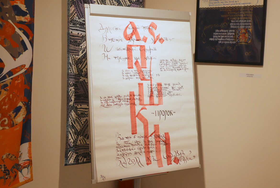 В Культурном центре имени Пушкина в Казани открылась выставка каллиграфических работ из фондов Российского государственного университета имени Косыгина «Кириллица и латиница». В нее вошли авторские композиции, созданные вручную перьями, тушью, акриловыми и гуашевыми красками на дизайнерской бумаге. Кураторы проекта отмечают – особое значение имеют работы, представляющие кириллицу: устав, полуустав, вязь и скоропись.