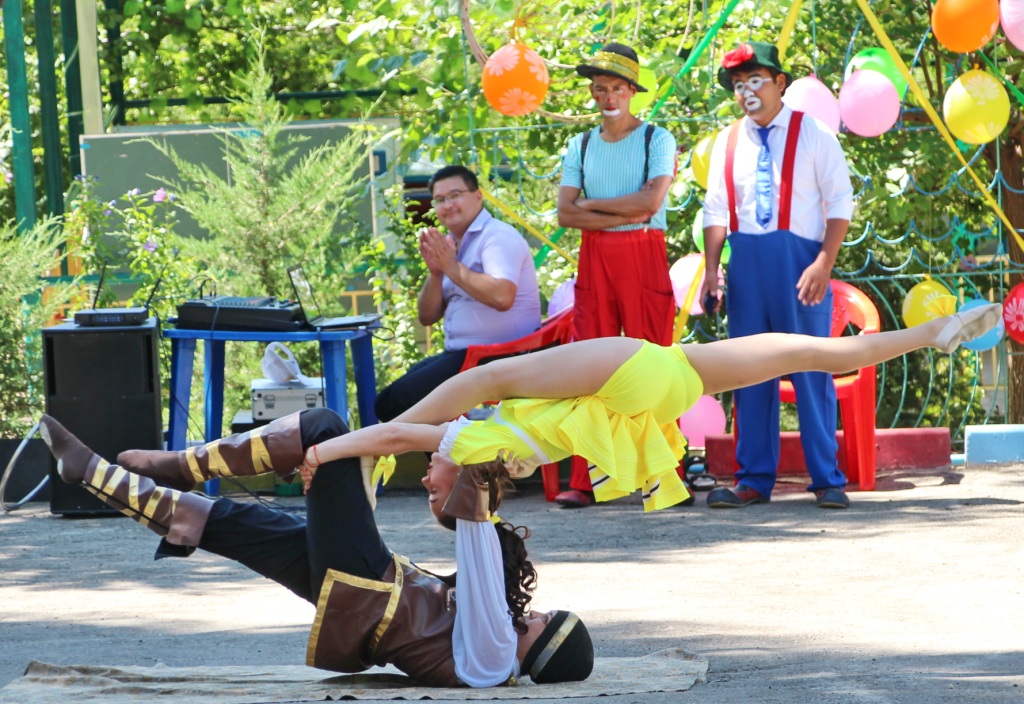 В программе праздника выступили артисты цирка: клоунский дуэт «Элмост» Камариддин Мостов и Эльнур Имамназаров, дуэт акробатов Эльзара Исянова и Анастасия Абилгафарова, жонглер Иван Мишуров, а также самый маленький акробат-эквилибрист на катушках Далер Хаметов. Артисты порадовали детей и участников мероприятия своими яркими выступлениями, а также придали позитивный заряд для участия в состязаниях детского сабантуя, которые подготовила для них молодежь ТОКПЦ г.Ташкента.