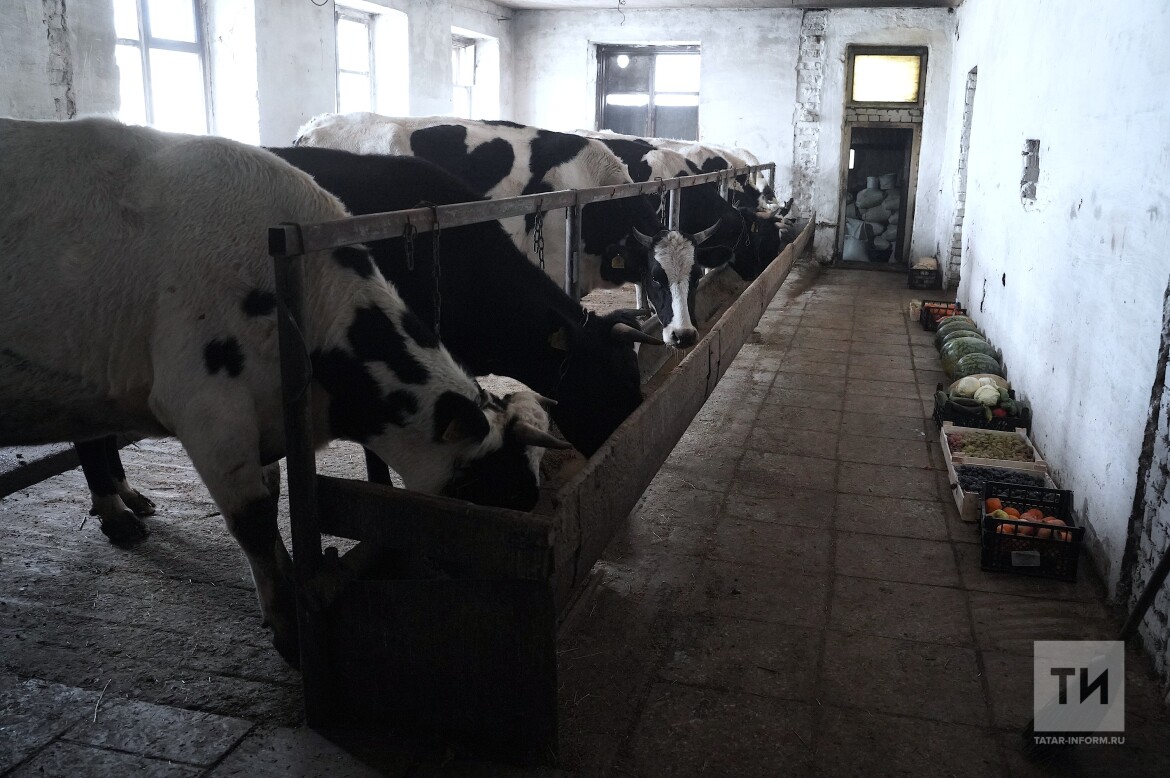 Хозяйство возникло буквально за месяц. Четыре года назад Ильнар абый заготовил очень много сена. Осталось и после продажи. А глава района как-то до этого ему обещал дать это здание, если Ильнар абый заведет скот. 29 сентября глава семьи позвонил жене: