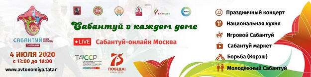 Советом Татарской национально-культурной автономии г.Москвы совместно с Правительством Москвы, Полномочным представительством Республики Татарстан в Российской Федерации и Полномочным представительством Республики Башкортостан при Президенте РФ было принято решение провести праздник «Сабантуй-2020» в формате, который диктует время, — онлайн-вещания на интернет-площадках. По словам организаторов, в программе будут сохранены ключевые события праздника, которые демонстрируют традиции и культуру братских народов.