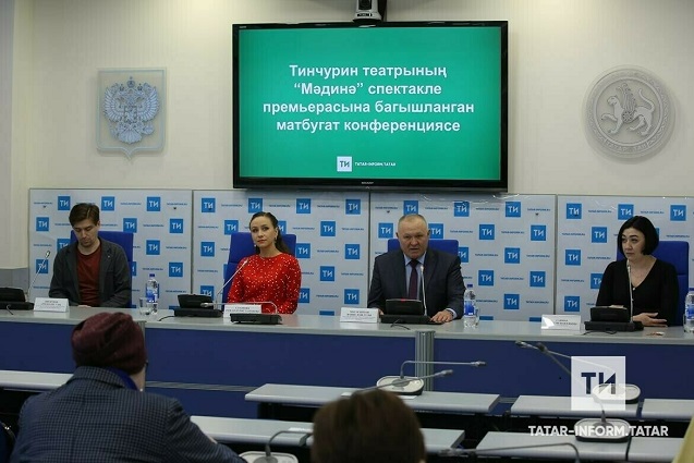 Жанр спектакля «Мадина» в постановке Ильгиза Зайниева обозначен как «поучительная история». Композитор — Эльмир Низамов, художник — Геннадий Скоморохов.