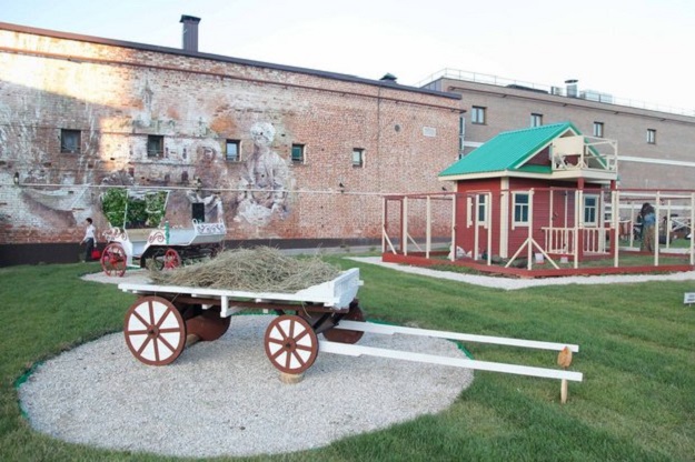 В пространство двора вписаны несколько лет стоявшие у ресторанного комплекса скульптуры животных, площадка «Сабантуй», небольшой огород, беседка и дровяник.